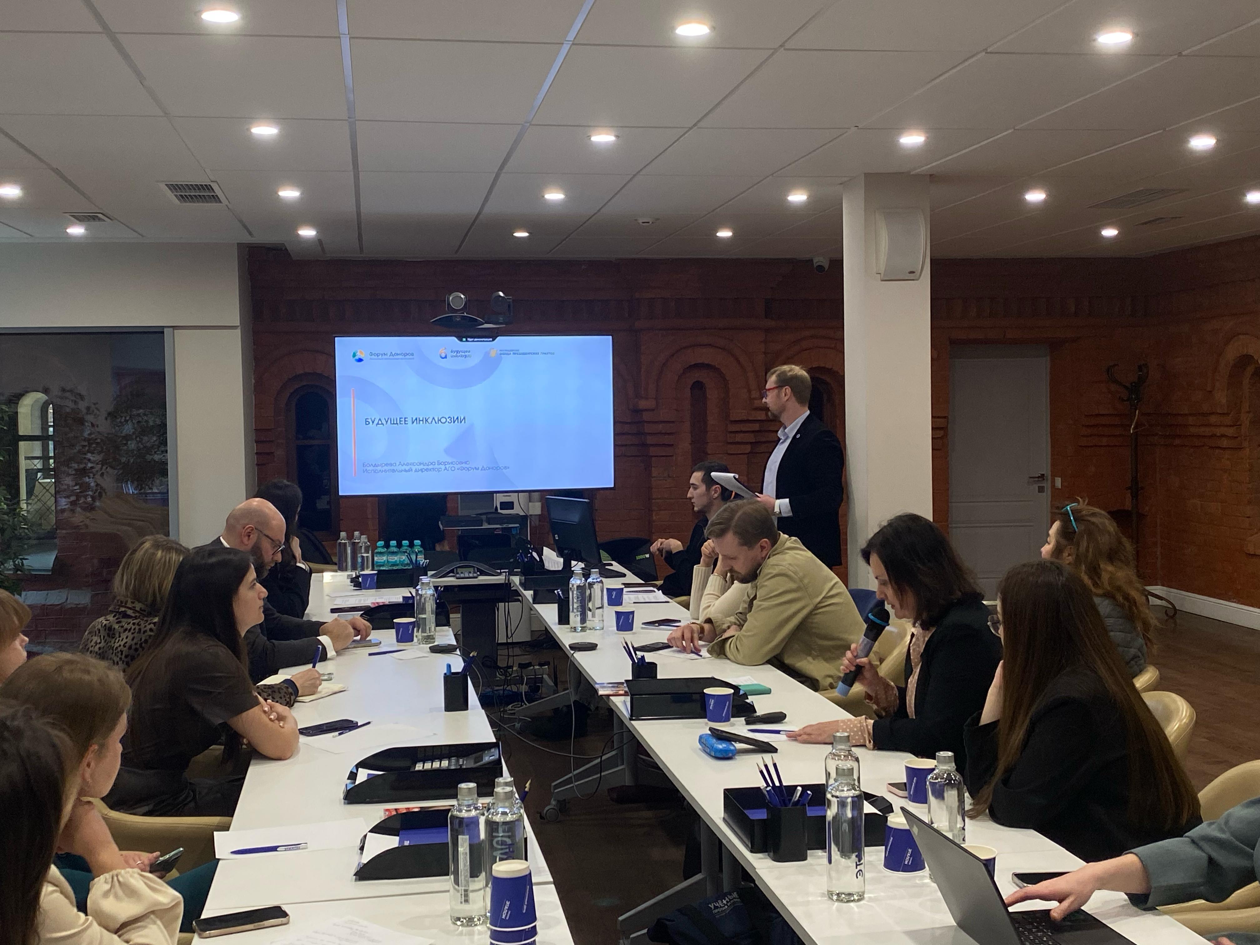 Исполнительный директор Ассоциации грантодающих организаций «Форум доноров» (объединяет около ста социально ответственных НКО и компаний, включая фонд «Система») Александра Болдырева презентовала проект «Будущее инклюзии», отвечающий на запросы участников некоммерческого и корпоративного секторов на взаимообмен информацией о существующих исследованиях и практиках эффективной работы с органами государственной власти в регионах, а также инновационных инструментах повышения качества жизни уязвимых групп.